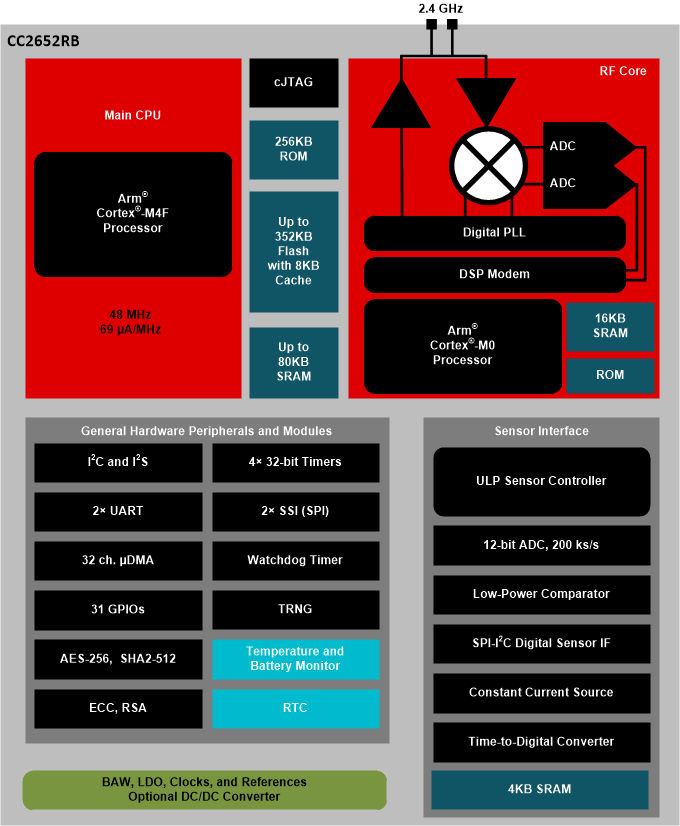 具有 352kB 闪存的 SimpleLink™ 32 位 Arm Cortex-M4F 多协议低于 1GHz 和 2.4GHz 无线 MCU